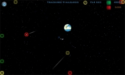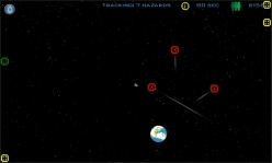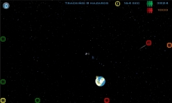 The Asteroids - The speed of motion of the asteroids was chosen so the player has appreciable time to locate, approach, and deflect the rocks. At accurate, simulation speeds for both the ship and the asteroids, the approach and deflection would need to be planned months or years in advance. Much as with the size of the ship, the sizes of the asteroids were chosen to allow the player to actually see the rocks and interact with them easily. For game purposes, the asteroids come in exactly three sizes (small, medium and large), rather than the power-law distribution realistically expected. All are greatly oversized with respect to reality: the largest asteroid size is comparable to that of the Moon, at the in-game scale of the Earth. Impacts (except with Earth) do not break pieces off the asteroids, and deflect them elastically, which is simply impossible. Approach directions of the asteroids are not biased by Earth's own motion through space, which should be the case.